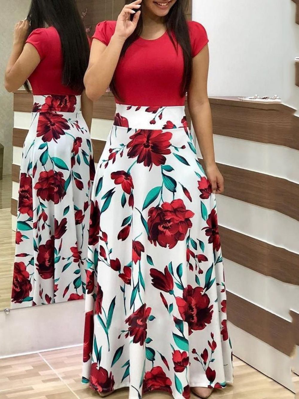 Afrikaanse Mode Vloer-Lengte Ronde Hals Pullover Jurk