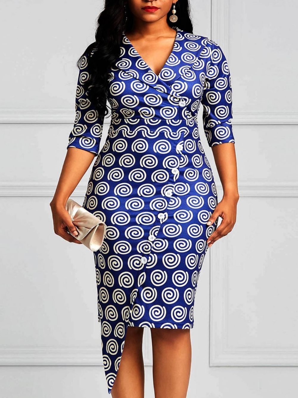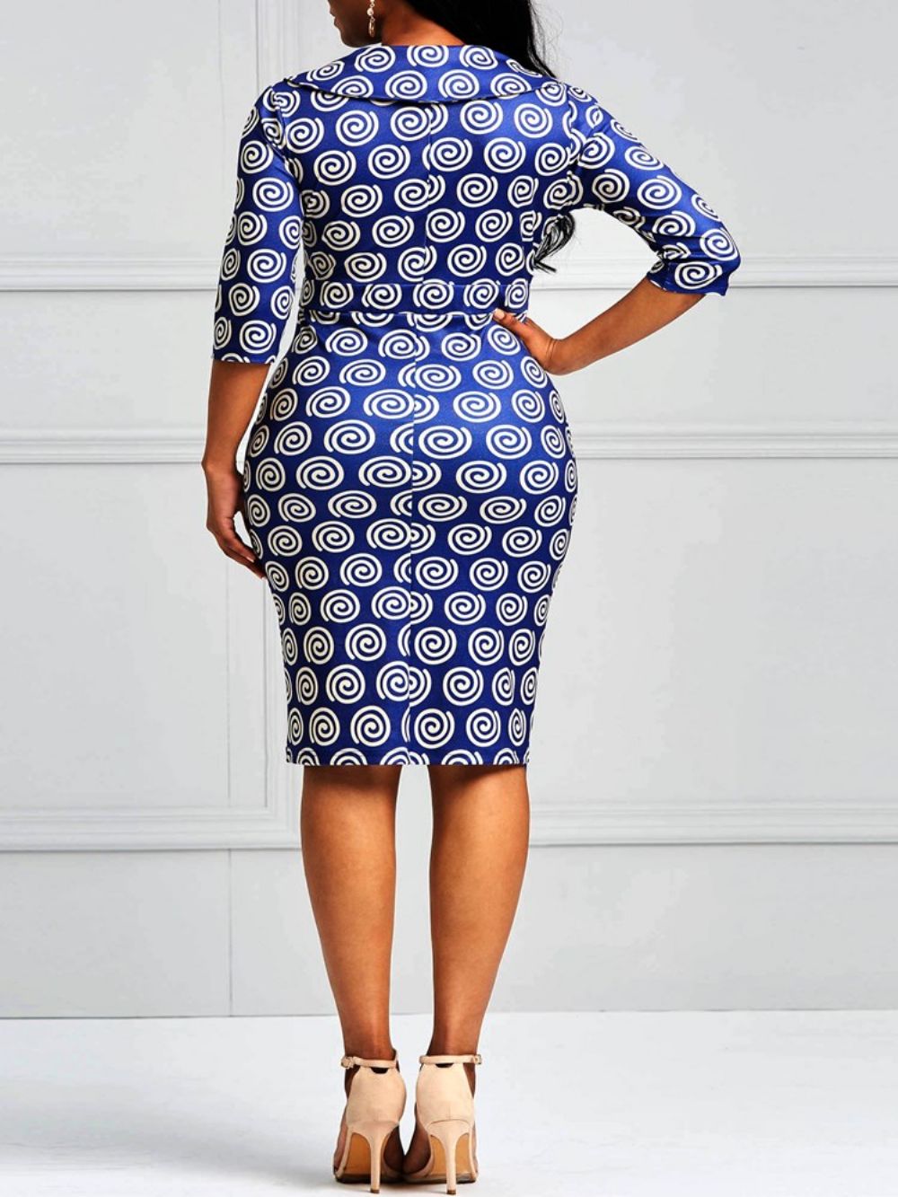 Bodycon Knielange Damesjurk Met Geometrische Print
