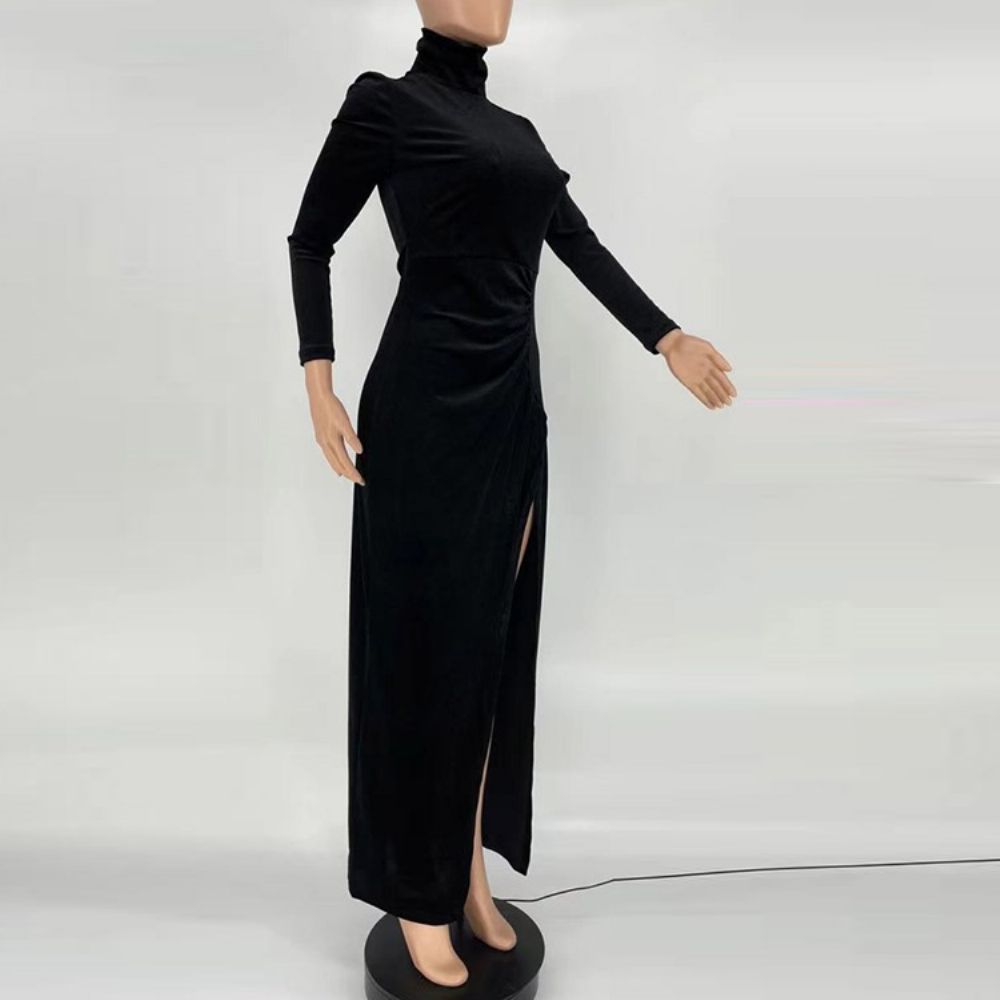 Bodycon-Modejurk Met Lange Mouwen En Coltrui Met Split
