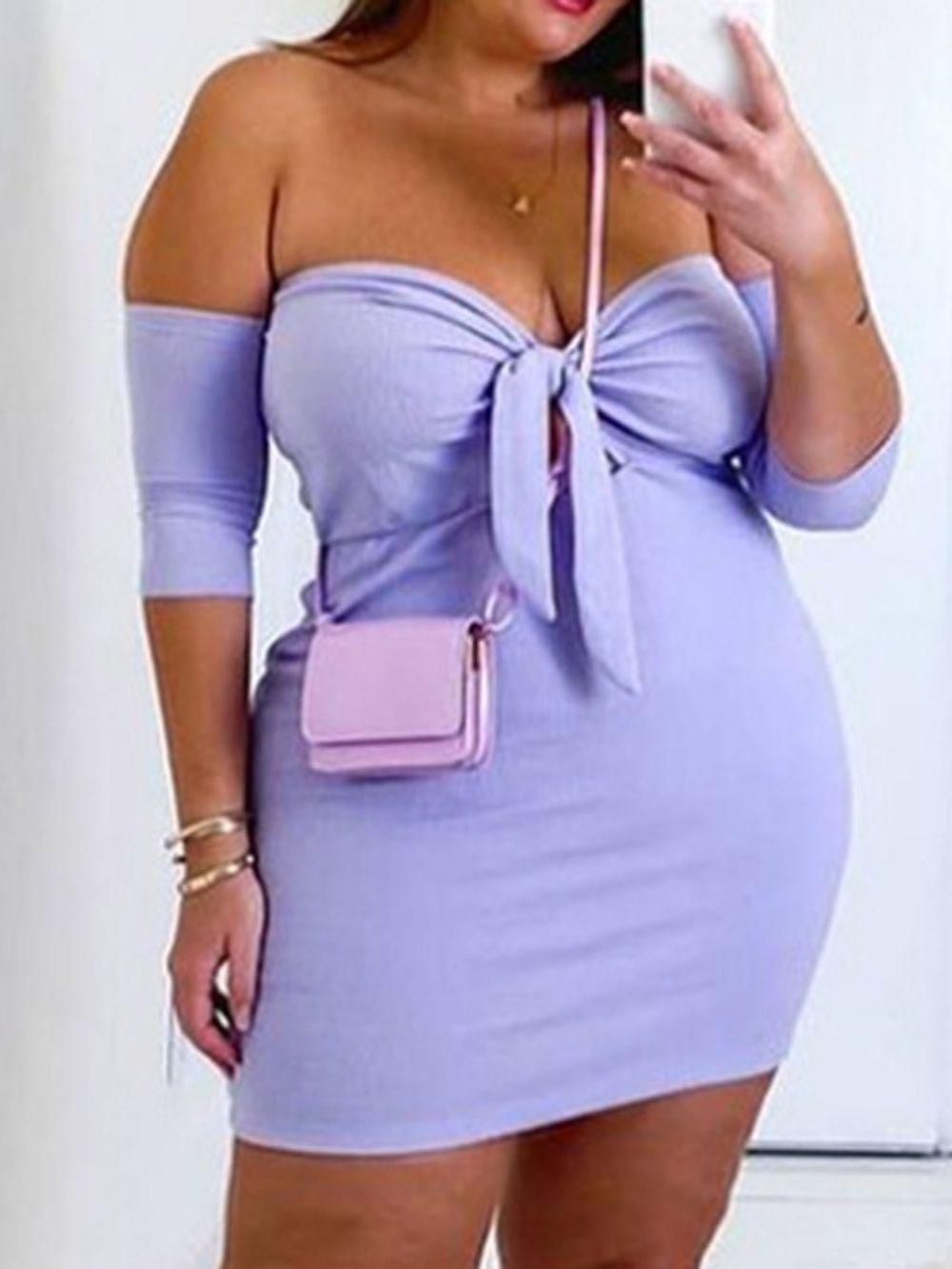Boven De Knie Driekwart Mouw Effen Mode Bodycon Jurk Plus maat