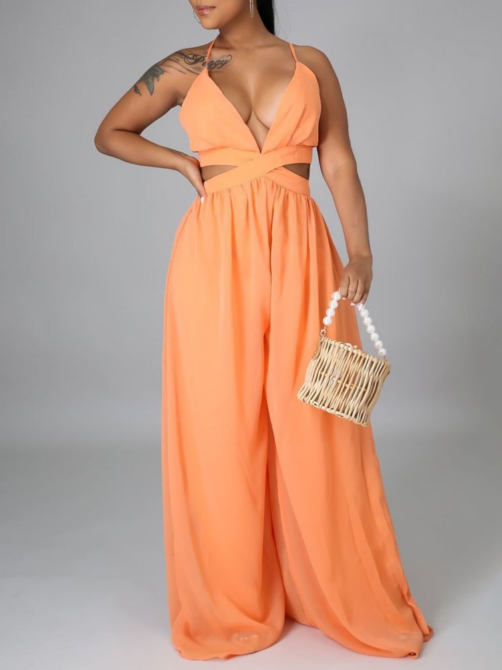 Casual Effen Holle Losse Jumpsuit Dames Met Wijde Pijpen