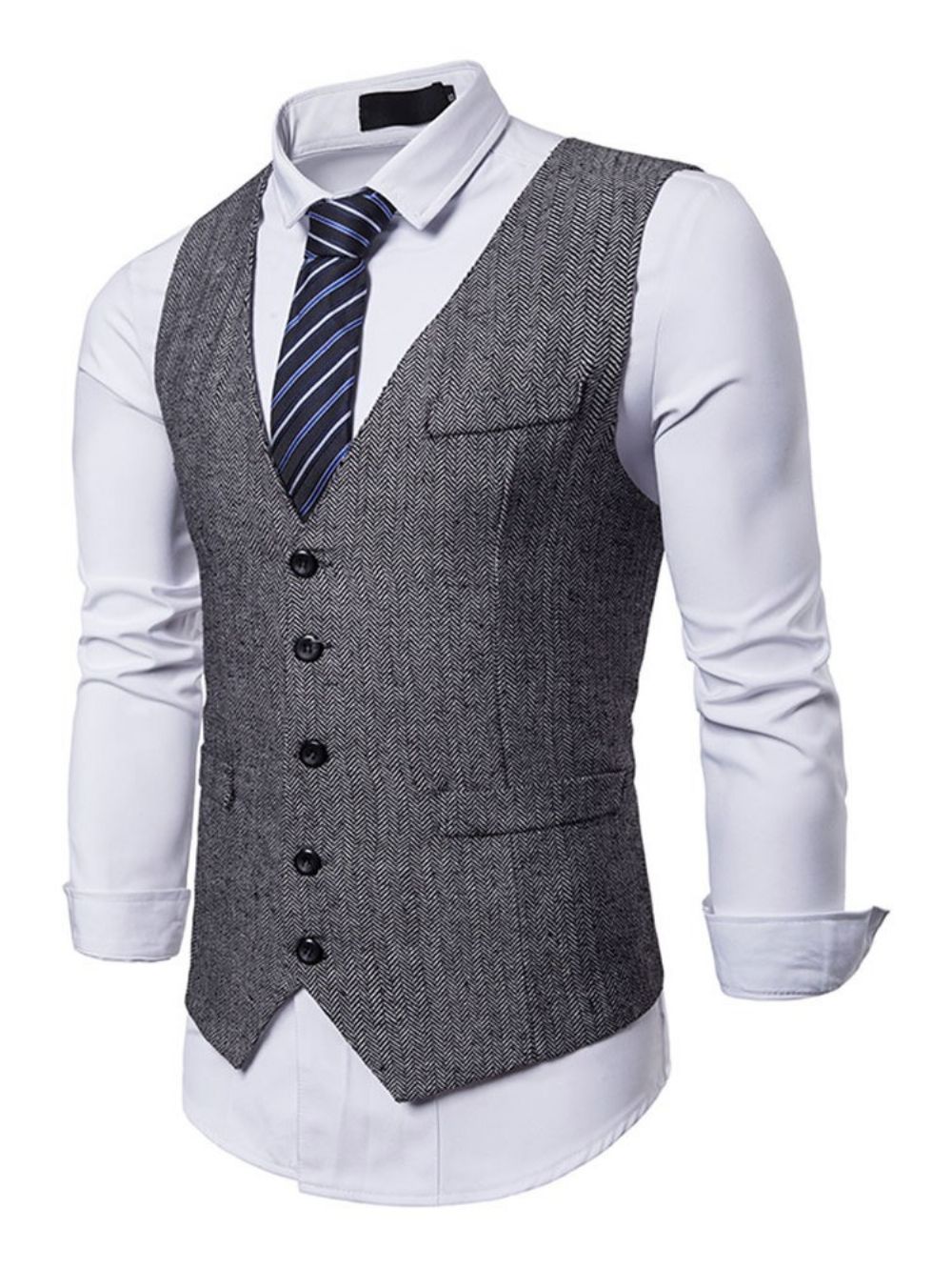 Casual Vest Heren Met Effen Zak En Enkele Rij Knopen