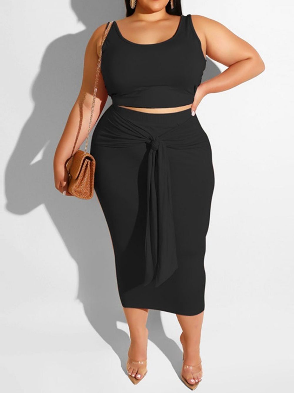 Effen Casual Potlood Pullover Dames Pak Vest En Rok Tweedelige Sets