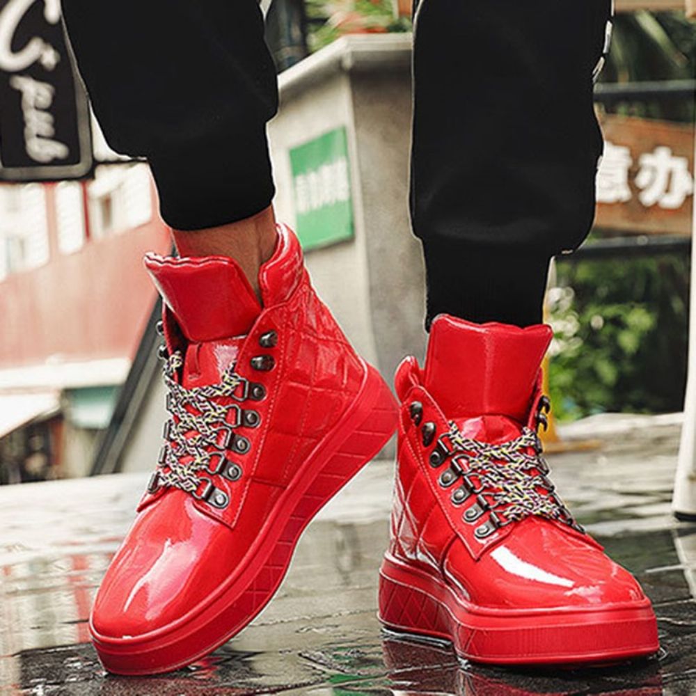 Effen Hoog Uitgesneden Skateschoenen Heren Met Veters En Ronde Neus