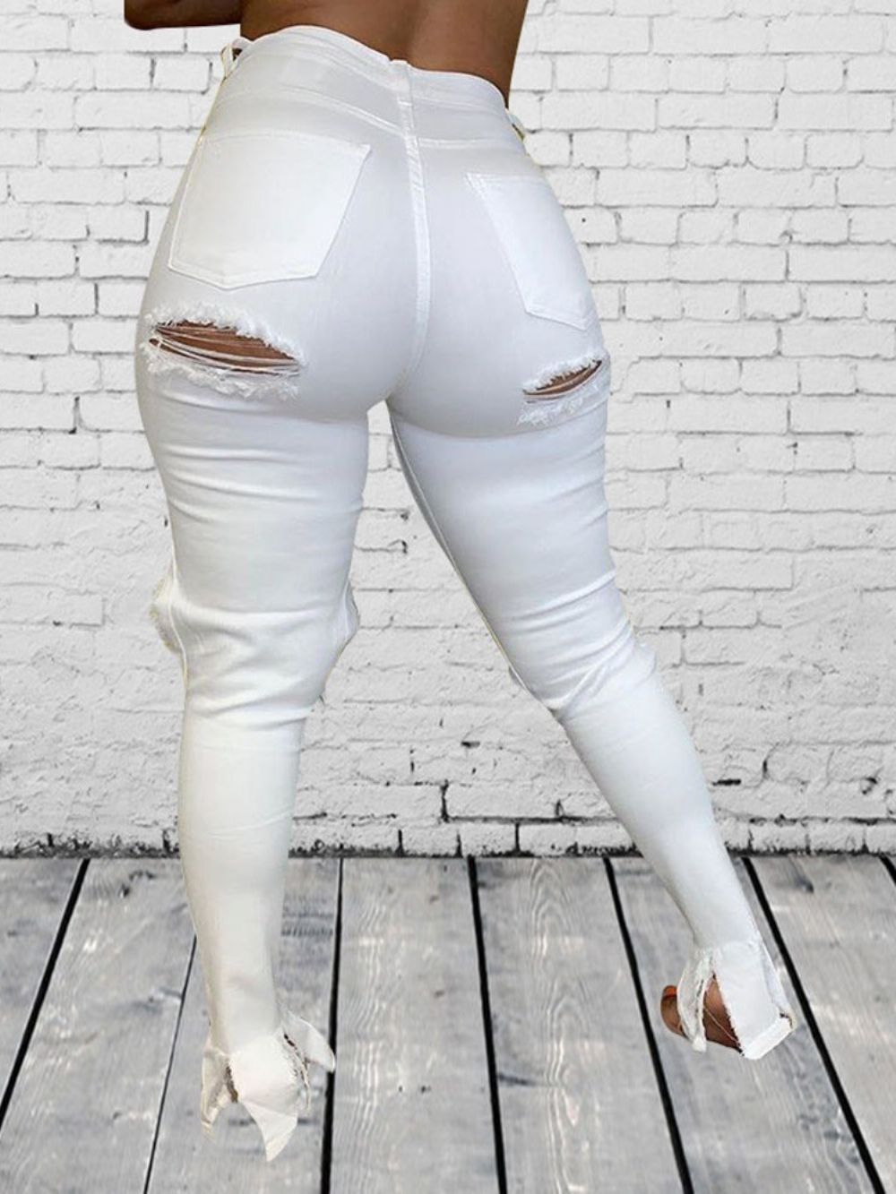 Effen Skinny Jeans Met Halfhoge Taille En Gaten