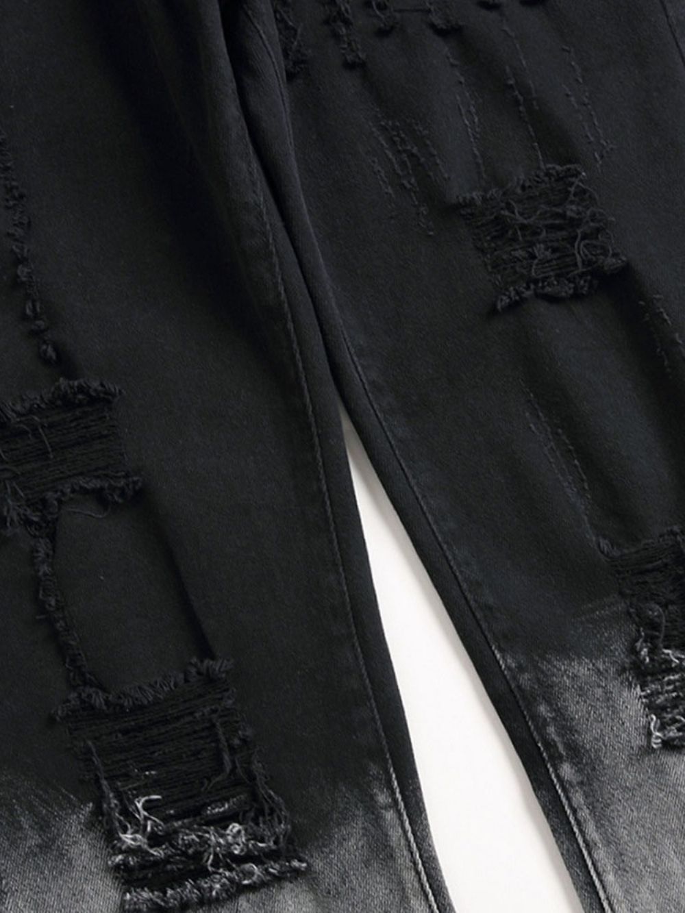 Gat Rechte Gradiënt Rits Midden Taille Jeans