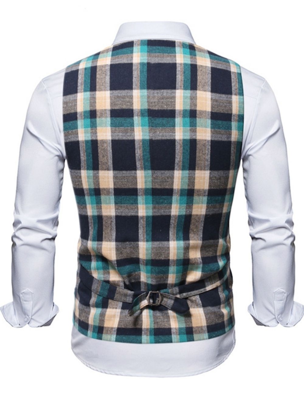 Geruite V-Hals Single-Breasted Ol-Gilet Met Knopen