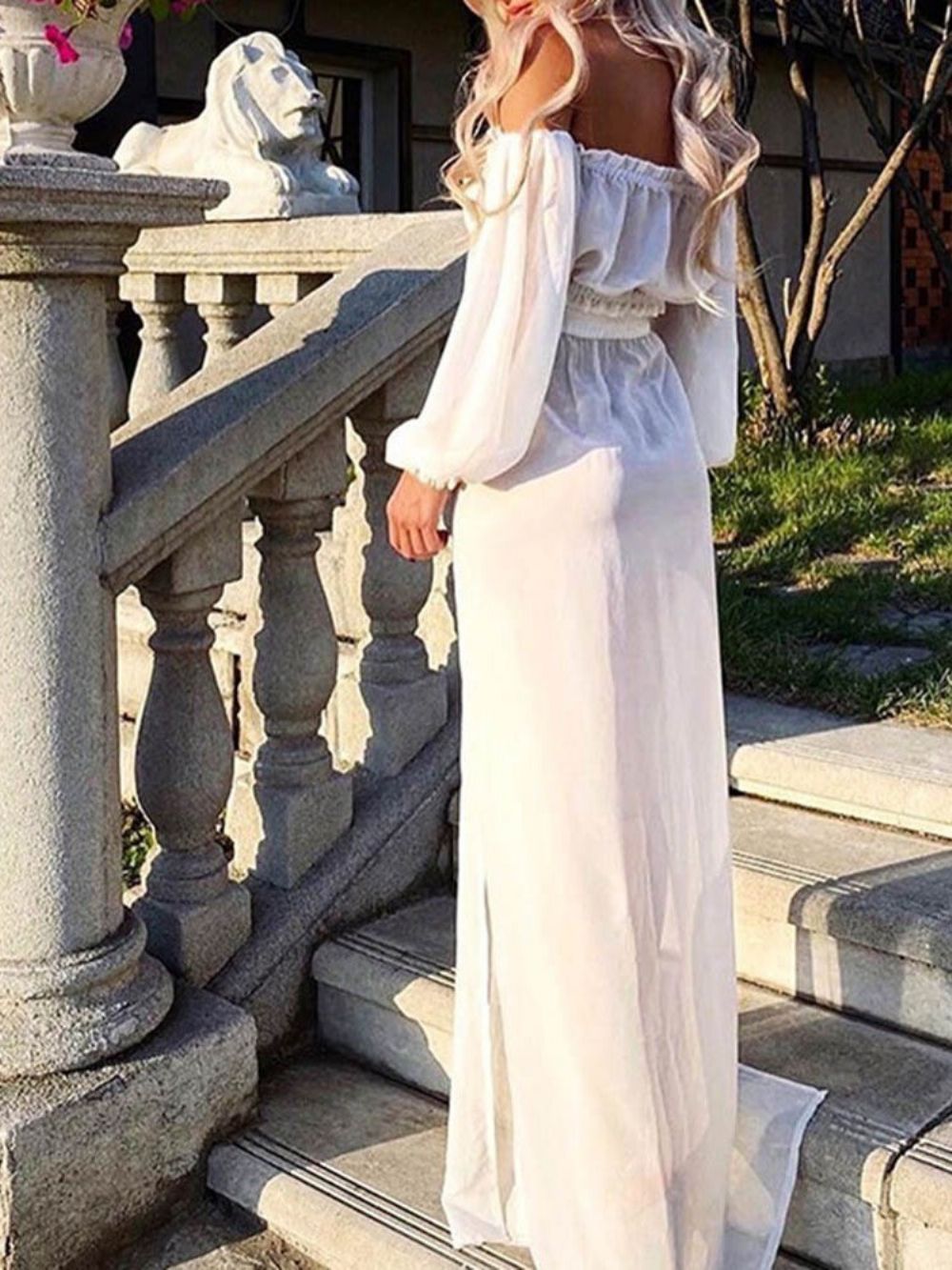 Gesplitste Effen Hemd Pullover A-Lijn Tweedelige Damessets