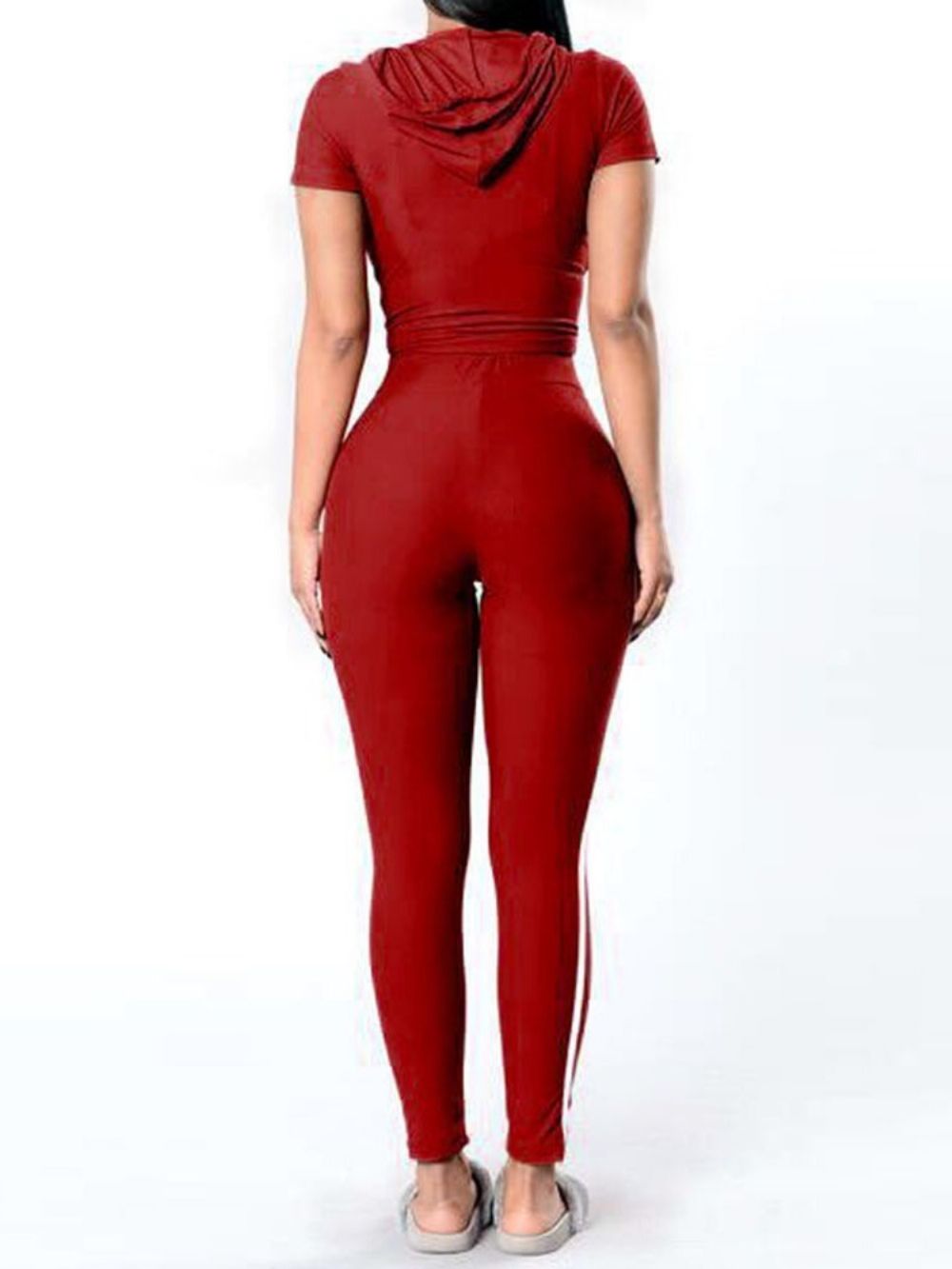 Gestreepte Mode Patchwork Potlood Broek Tweedelige Damessets Met Capuchon