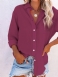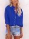Halflange Damesblouse Met Effen Revers En Lange Mouwen