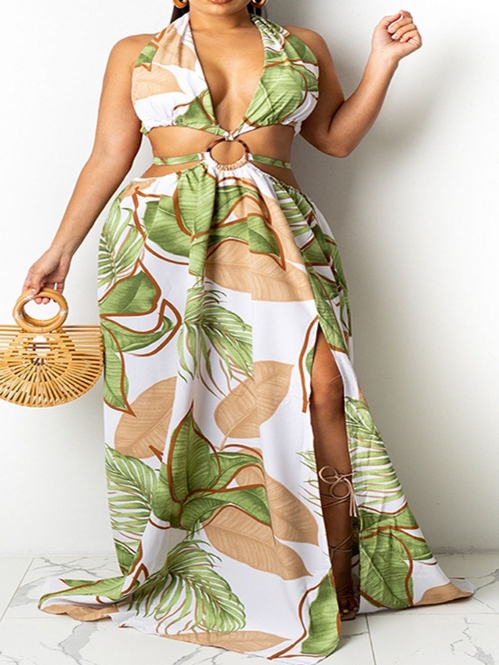 Holle Vloerlengte Mouwloze Uitbreidingsjurk Met Halter