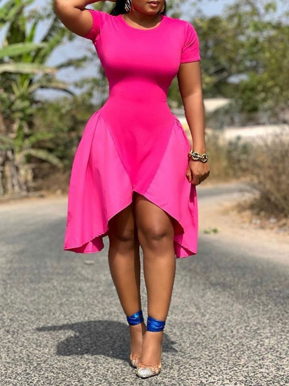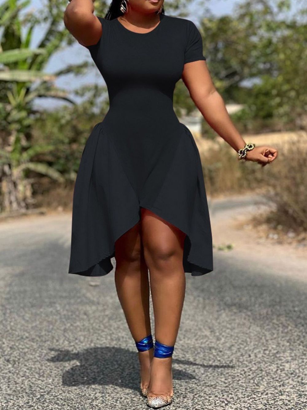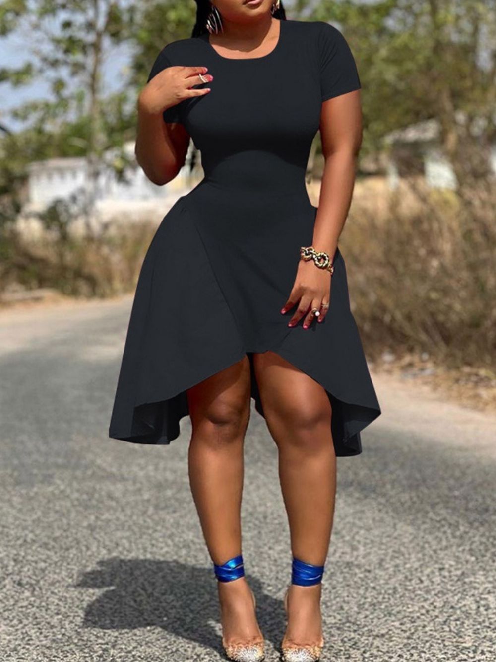 Knielange Asymmetrische Vrijetijdsjurk Met Ronde Hals En Halfhoge Taille