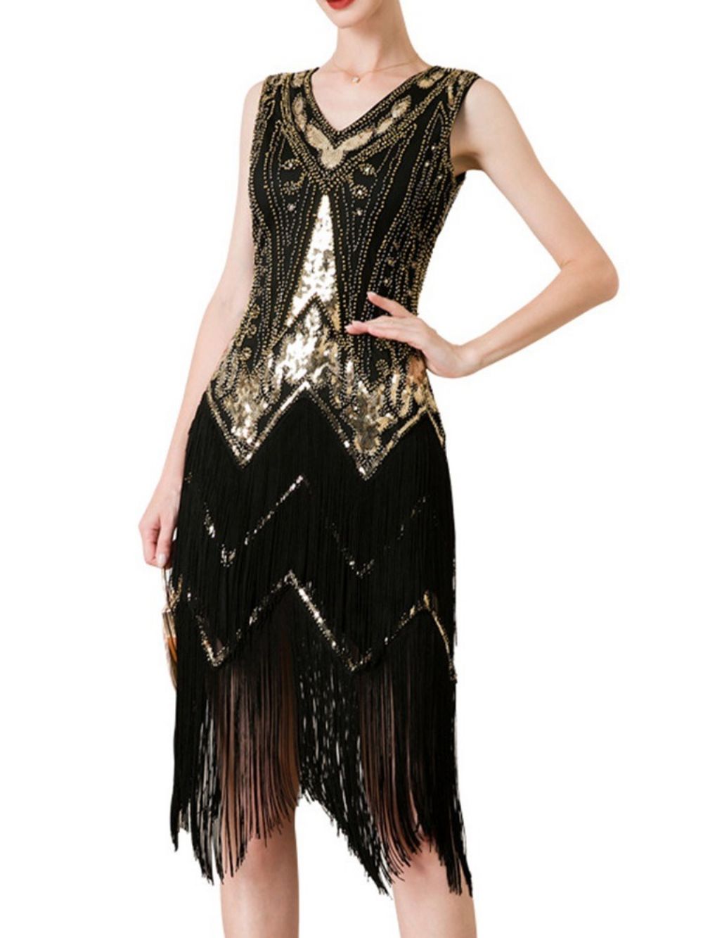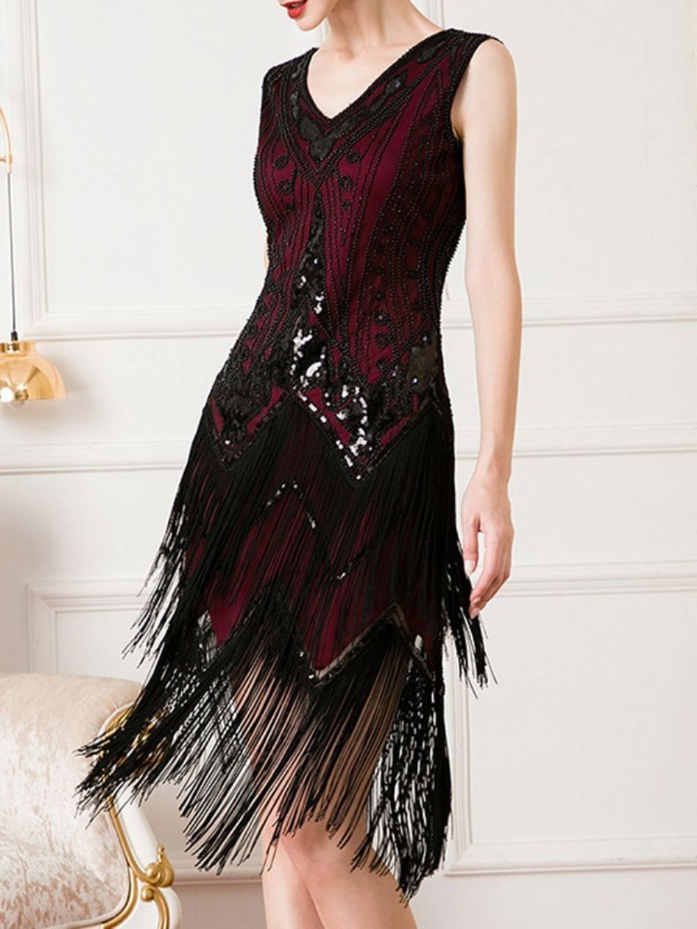 Kwastje V-Hals Knielange Hoge Taille Pullover Bodycon Jurk