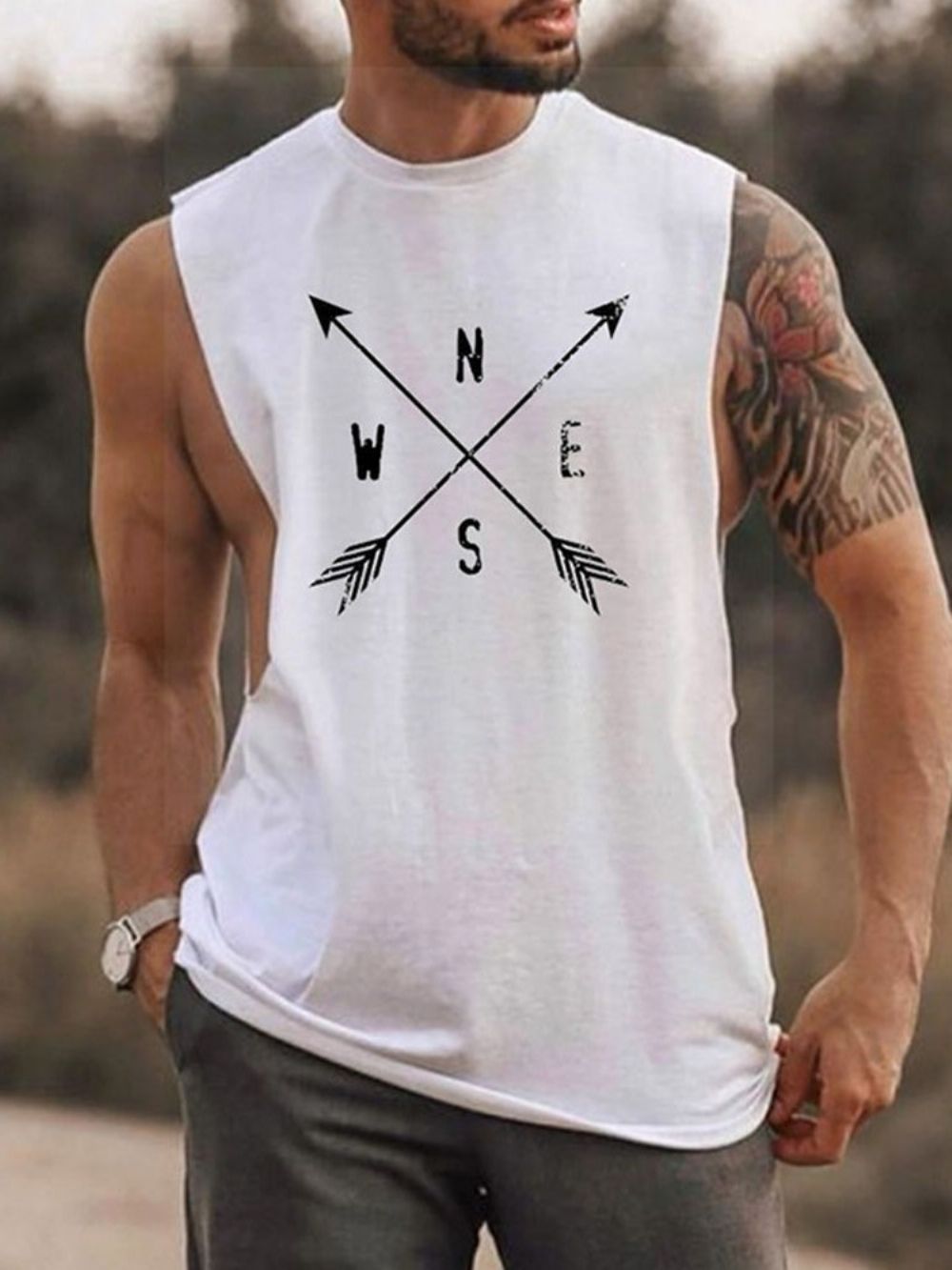 Letter T-Shirt Met Ronde Hals En Mouwloze Trui Heren