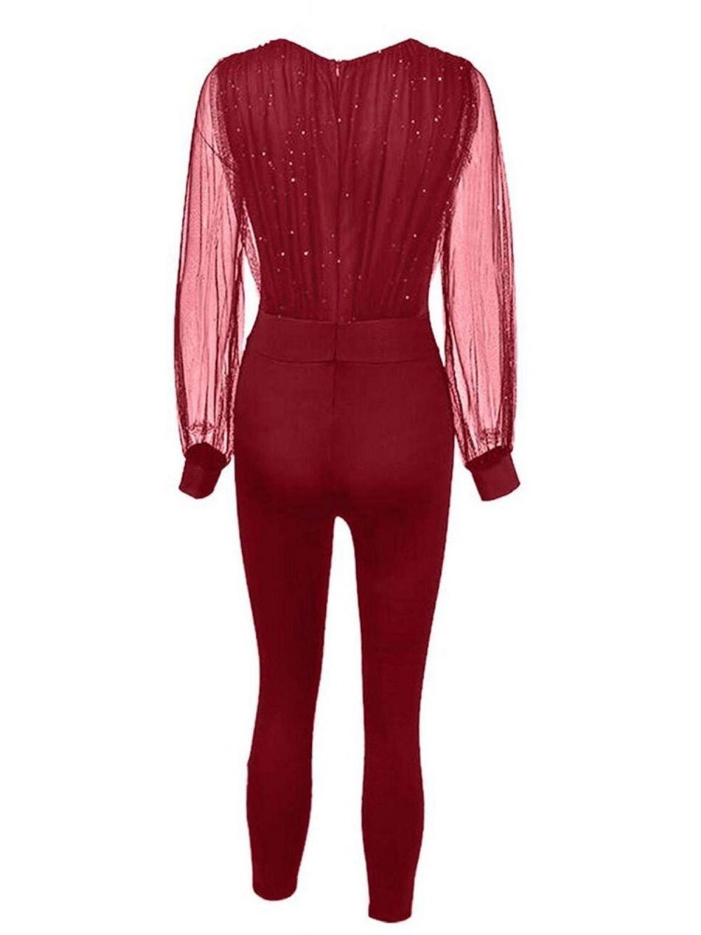 Mode Doorschijnende Mid Waist Potloodbroek Jumpsuit Met Volledige Lengte