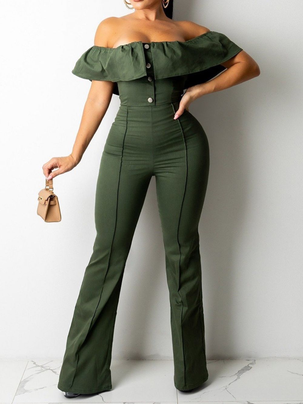 Modieuze Effen Rechte Jumpsuit Met Veters