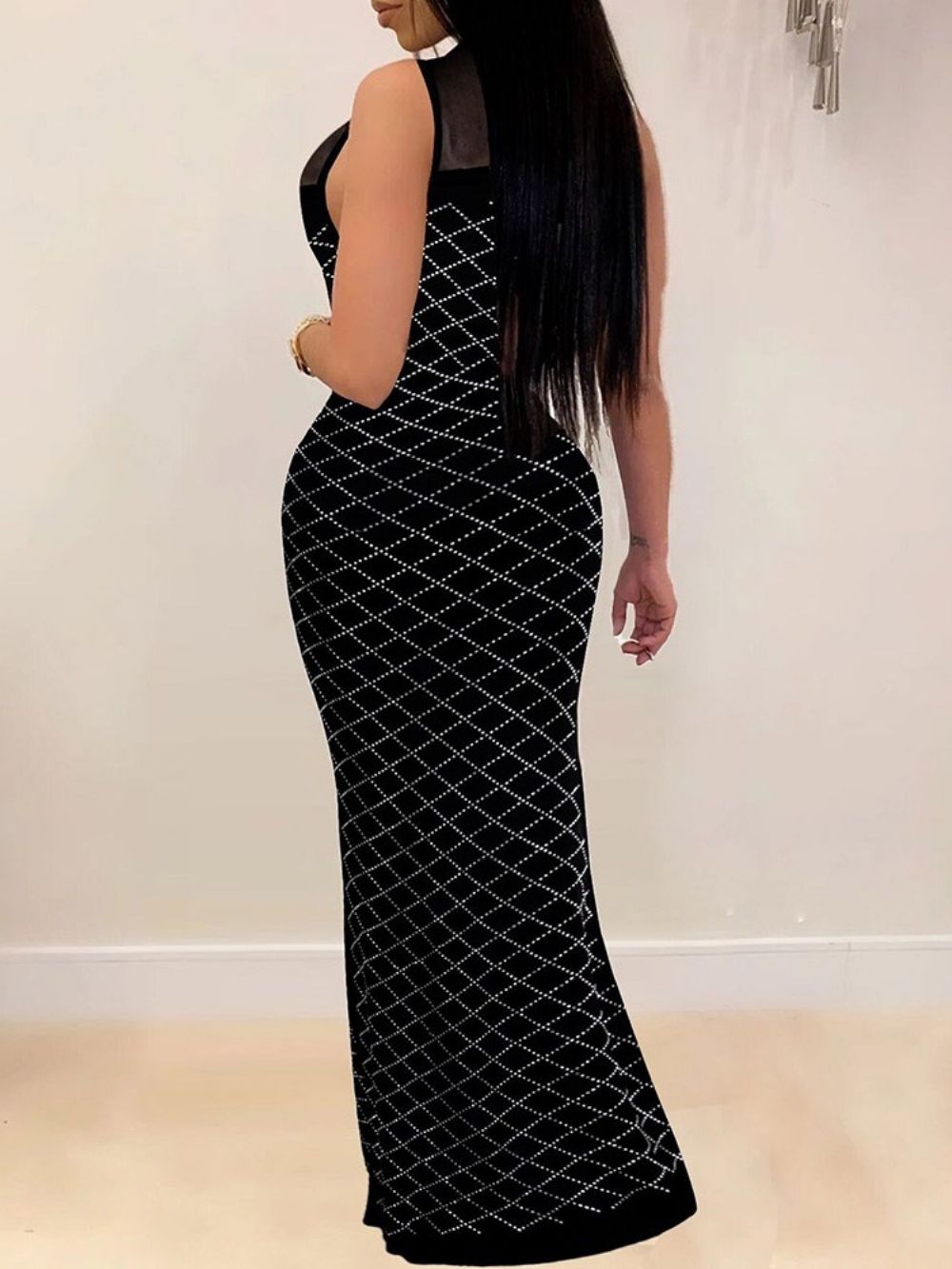 Mouwloze Vloerlengte Opstaande Kraag Hoge Taille Zeemeermin Maxi-Jurk