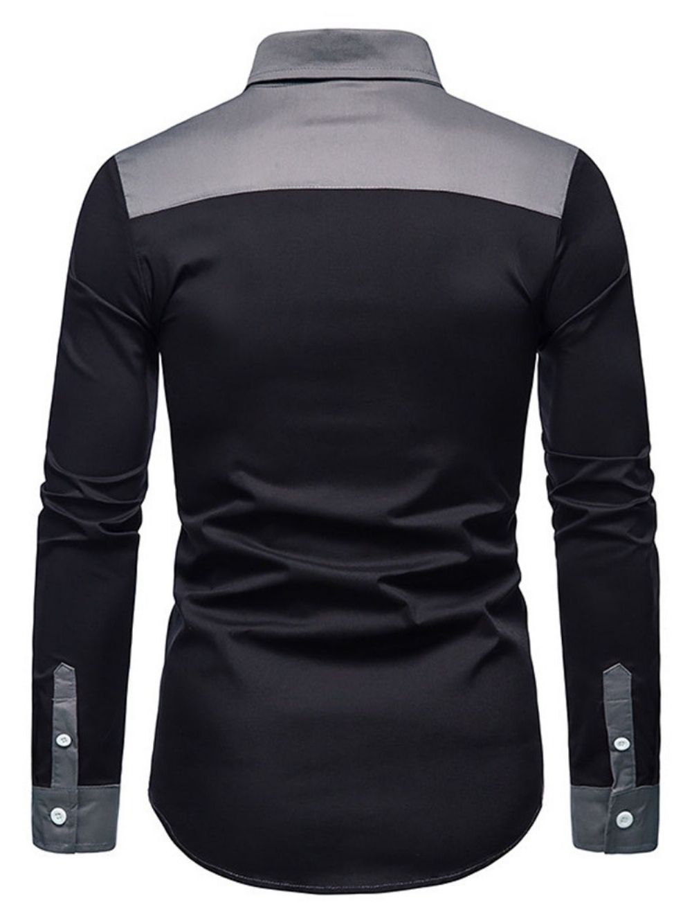 Ol Revers Kleurblok Herfst Overhemd Met Één Rij Knopen Heren