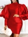 Opstaande Kraag Lange Mouw Boven De Knie Mode Effen Jurk