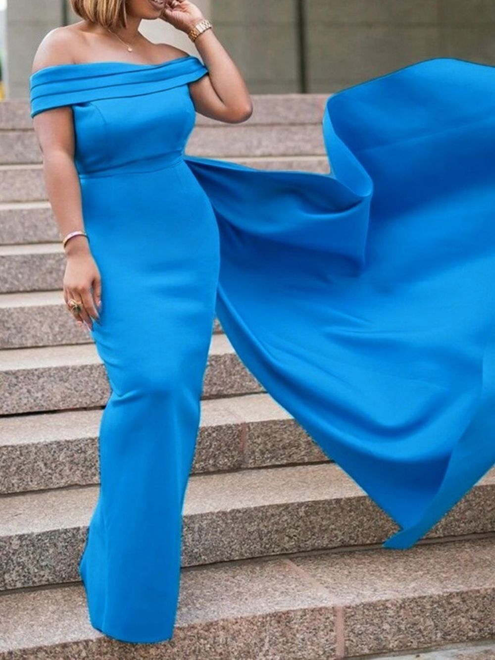 Patchwork Jurk Met Korte Mouwen Off-Shoulder Effen Mode