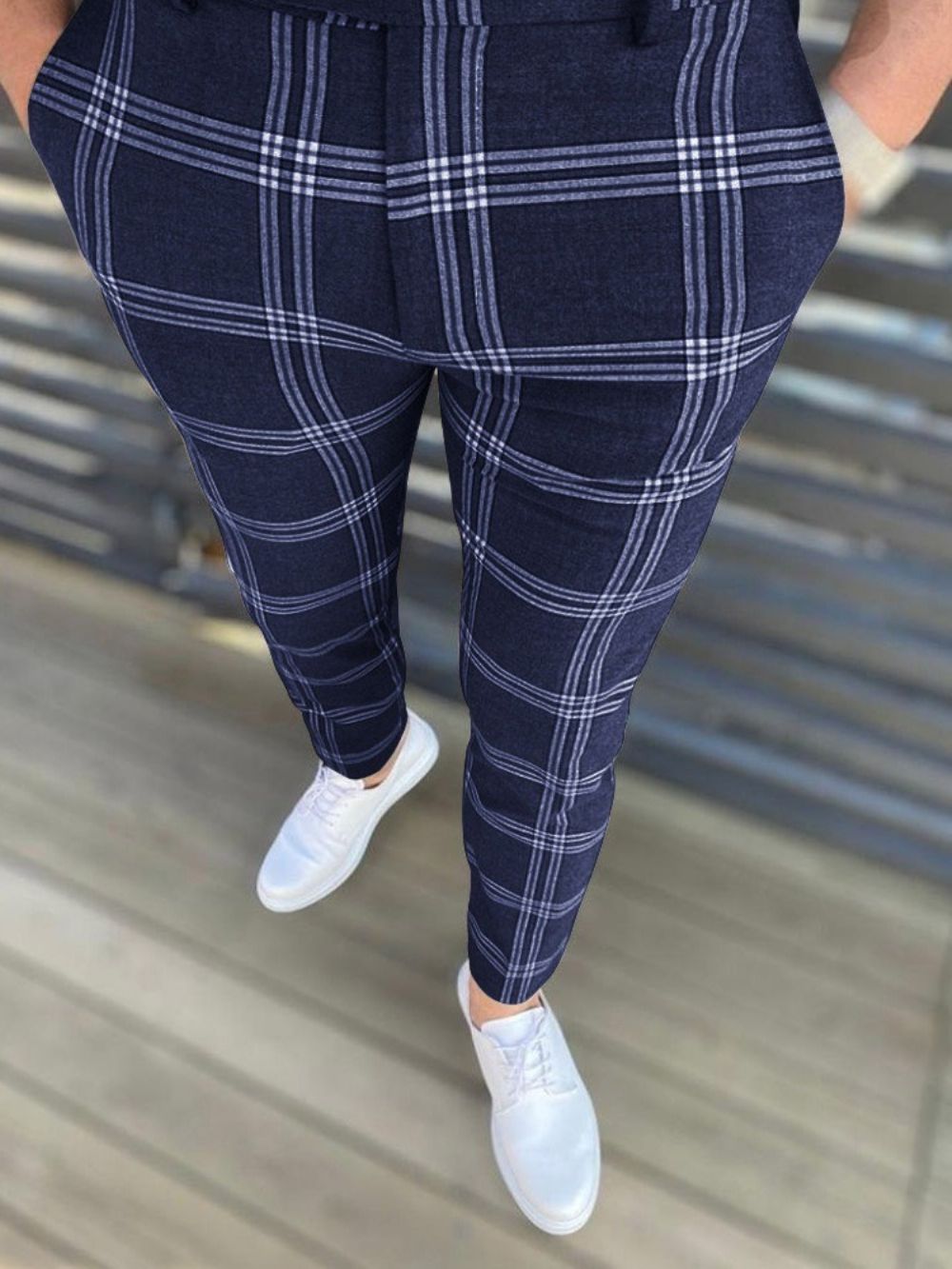 Potloodbroek Geruite Rits Europese Casual Broek Heren