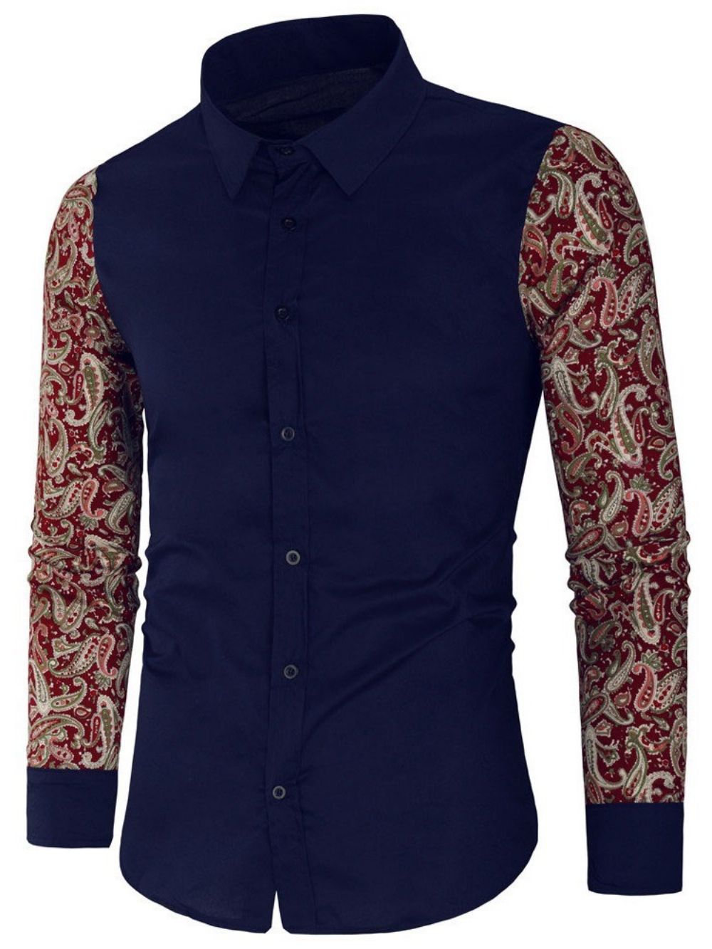 Slim Herfstoverhemd Dames Met Patchwork-Patchwork En Bloemen