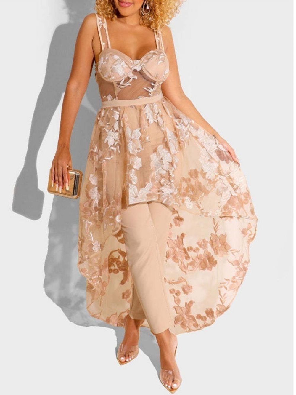 Vest Doorzichtige Effen Potlood Broek Vierkante Hals Tweedelige Sets