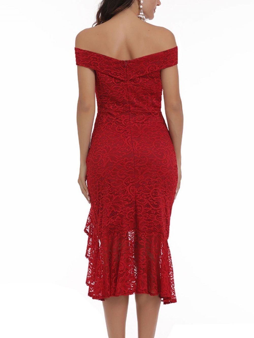 Westerse Jurk Met Korte Mouwen Off-Shoulder Halfhoge Taille