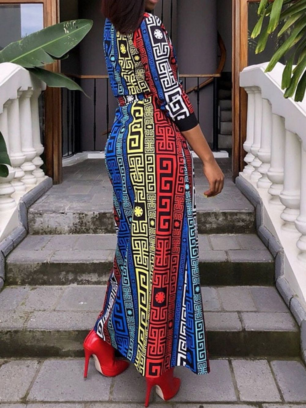 Zomerjurk Met Driekwartmouwen Tot De Grond Met Veters En Kleurblokken